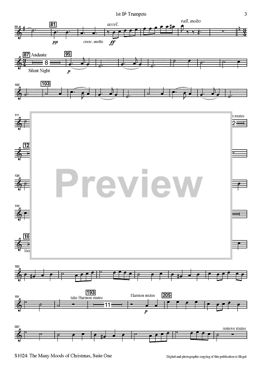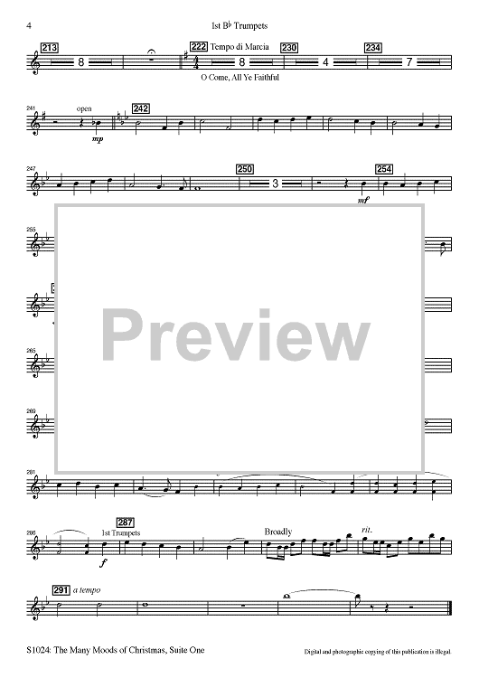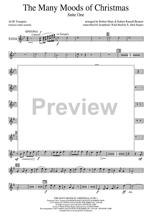 Digital Sheet Music for The Many Moods of Christmas: Suite No. 1 - Bb Trumpet 1 by Robert Russell Bennett, R. Mark Rogers, Robert Shaw scored for Concert Band; id:502764