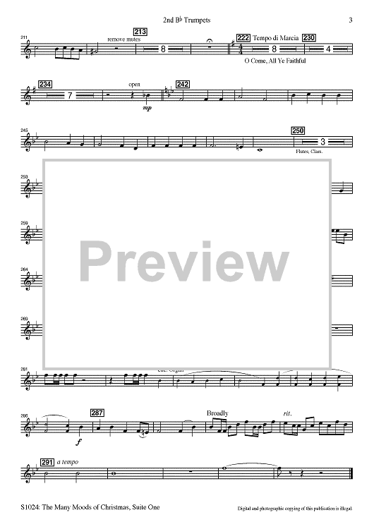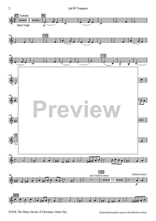 Digital Sheet Music for The Many Moods of Christmas: Suite No. 1 - Bb Trumpet 2 by Robert Russell Bennett, R. Mark Rogers, Robert Shaw scored for Concert Band; id:502765
