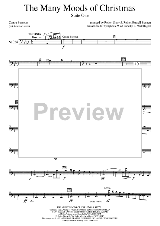 Digital Sheet Music for The Many Moods of Christmas: Suite No. 1 - Contrabassoon by Robert Russell Bennett, R. Mark Rogers, Robert Shaw scored for Concert Band; id:502759