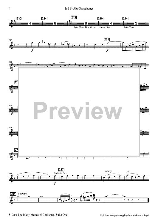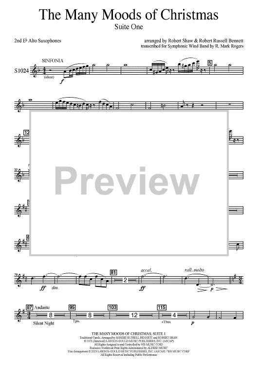 Digital Sheet Music for The Many Moods of Christmas: Suite No. 1 - Eb Alto Sax 2 by Robert Russell Bennett, R. Mark Rogers, Robert Shaw scored for Concert Band; id:502761