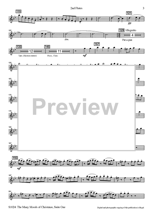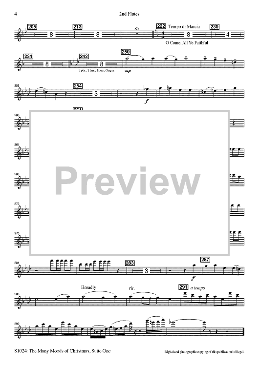 Digital Sheet Music for The Many Moods of Christmas: Suite No. 1 - Flute 2 by Robert Russell Bennett, R. Mark Rogers, Robert Shaw scored for Concert Band; id:502744