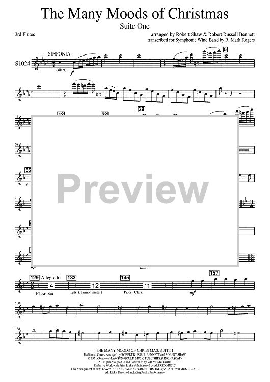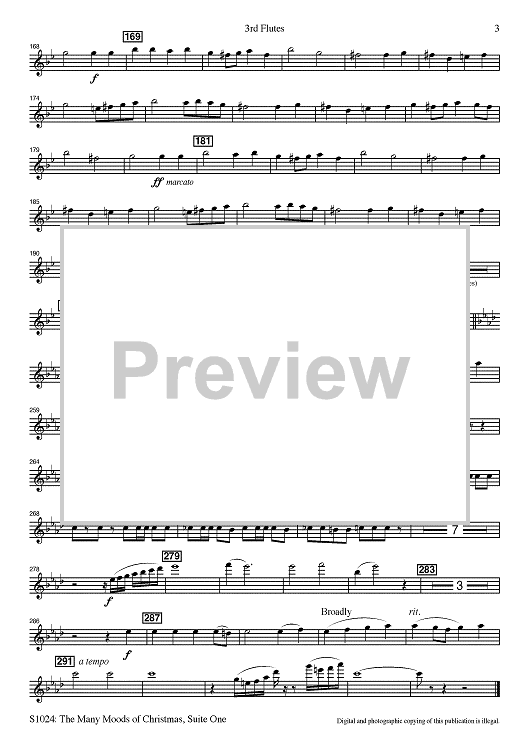 Digital Sheet Music for The Many Moods of Christmas: Suite No. 1 - Flute 3 by Robert Russell Bennett, R. Mark Rogers, Robert Shaw scored for Concert Band; id:502745