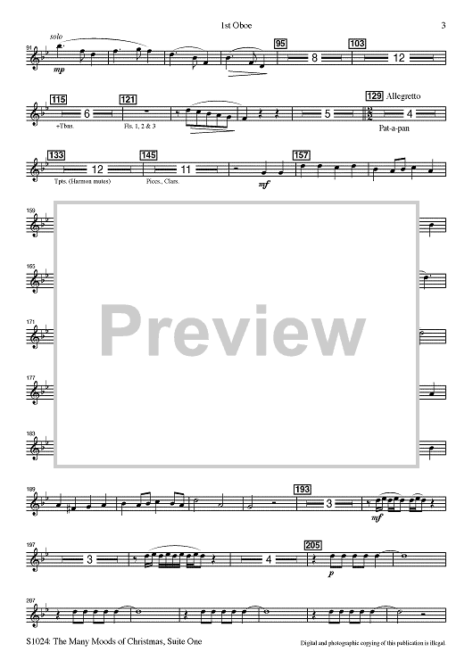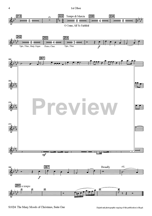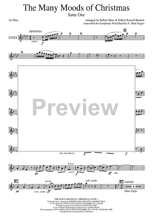Digital Sheet Music for The Many Moods of Christmas: Suite No. 1 - Oboe 1 by Robert Russell Bennett, R. Mark Rogers, Robert Shaw scored for Concert Band; id:502746