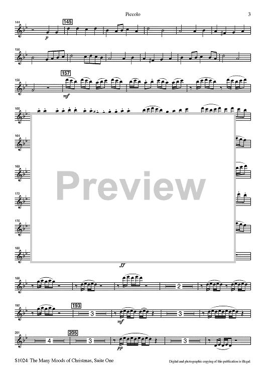 Digital Sheet Music for The Many Moods of Christmas: Suite No. 1 - Piccolo 1 by Robert Russell Bennett, R. Mark Rogers, Robert Shaw scored for Concert Band; id:502741