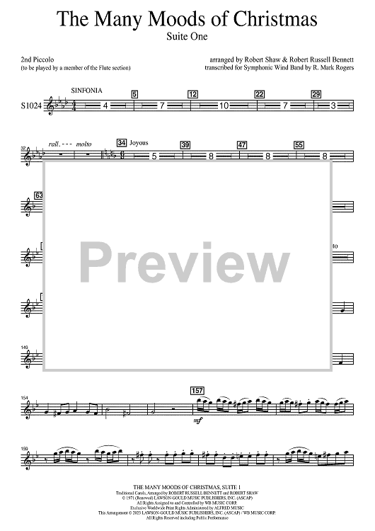 Digital Sheet Music for The Many Moods of Christmas: Suite No. 1 - Piccolo 2 by Robert Russell Bennett, R. Mark Rogers, Robert Shaw scored for Concert Band; id:502742