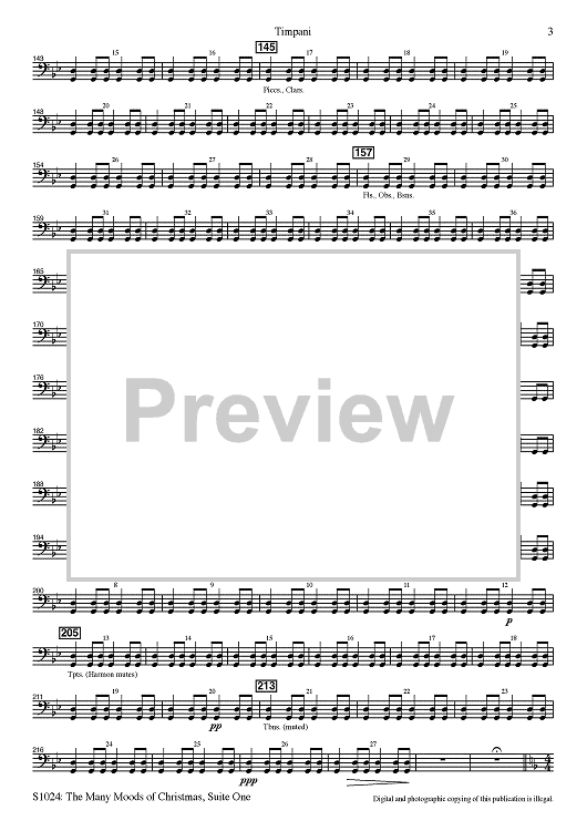 Digital Sheet Music for The Many Moods of Christmas: Suite No. 1 - Timpani by Robert Russell Bennett, R. Mark Rogers, Robert Shaw scored for Concert Band; id:502778
