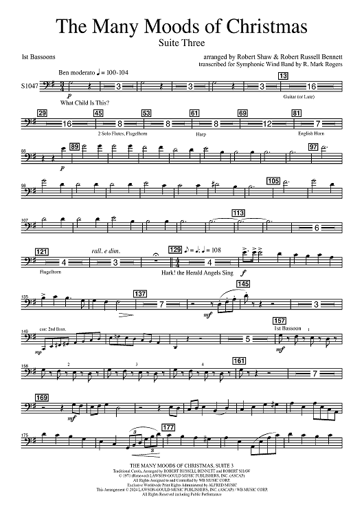 Digital Sheet Music for The Many Moods of Christmas: Suite No. 3 - Bassoon 1 by Robert Russell Bennett, R. Mark Rogers scored for Concert Band; id:504427