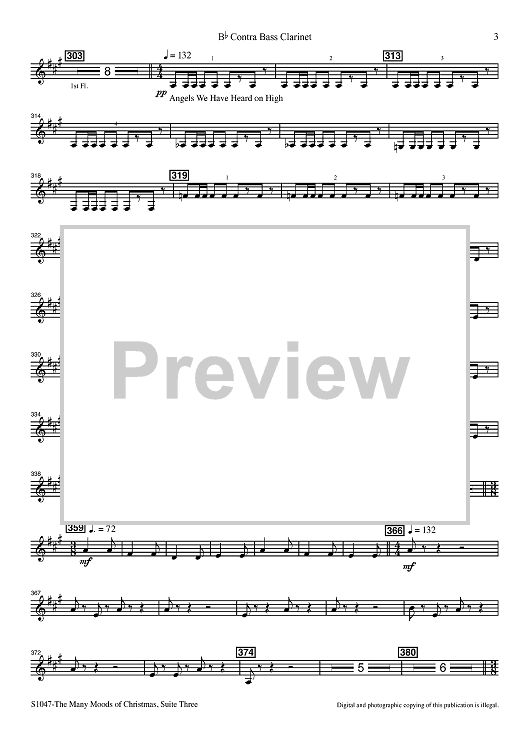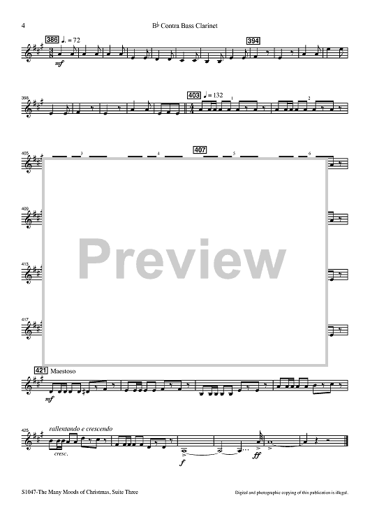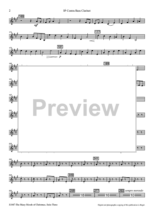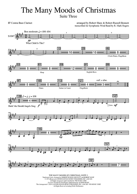 Digital Sheet Music for The Many Moods of Christmas: Suite No. 3 - Bb Contra Bass Clarinet by Robert Russell Bennett, R. Mark Rogers scored for Concert Band; id:504426