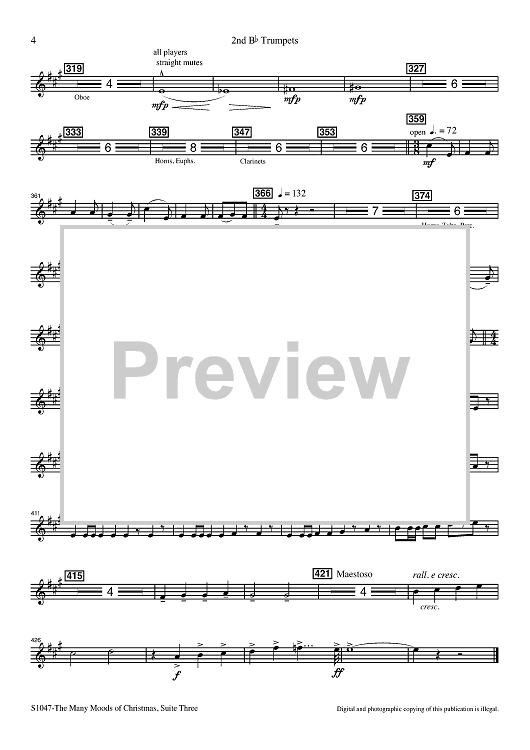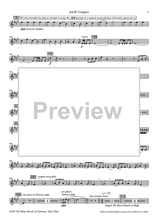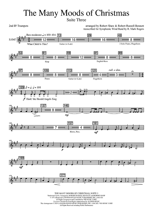 Digital Sheet Music for The Many Moods of Christmas: Suite No. 3 - Bb Trumpet 2 by Robert Russell Bennett, R. Mark Rogers scored for Concert Band; id:504436