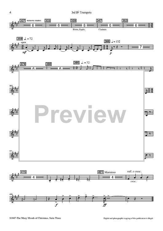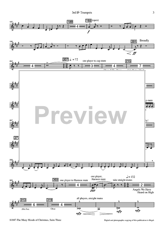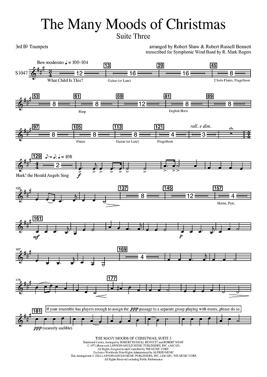 Digital Sheet Music for The Many Moods of Christmas: Suite No. 3 - Bb Trumpet 3 by Robert Russell Bennett, R. Mark Rogers scored for Concert Band; id:504437