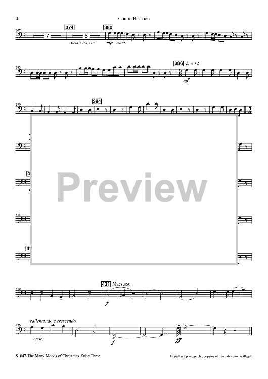 Digital Sheet Music for The Many Moods of Christmas: Suite No. 3 - Contrabassoon by Robert Russell Bennett, R. Mark Rogers scored for Concert Band; id:504429