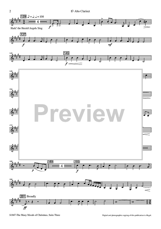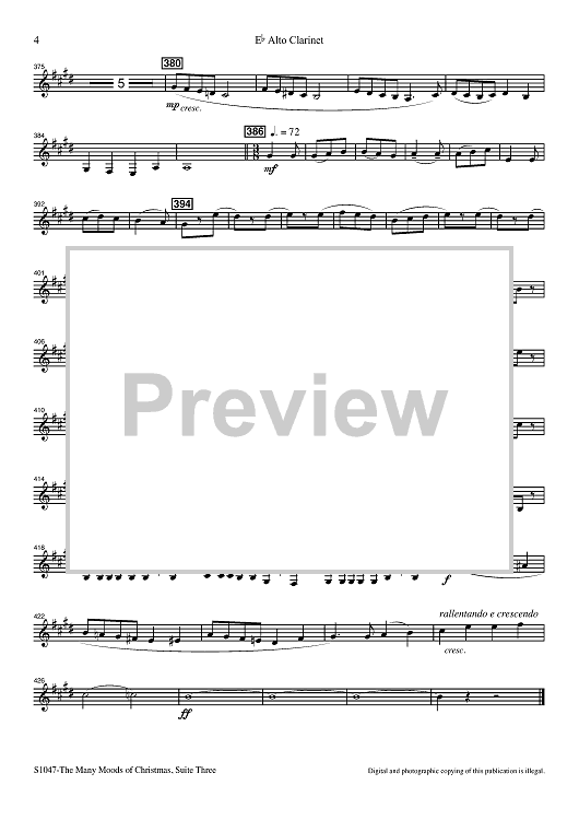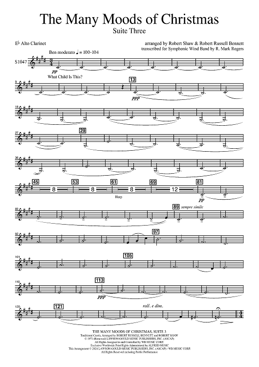 Digital Sheet Music for The Many Moods of Christmas: Suite No. 3 - Eb Alto Clarinet by Robert Russell Bennett, R. Mark Rogers scored for Concert Band; id:504423