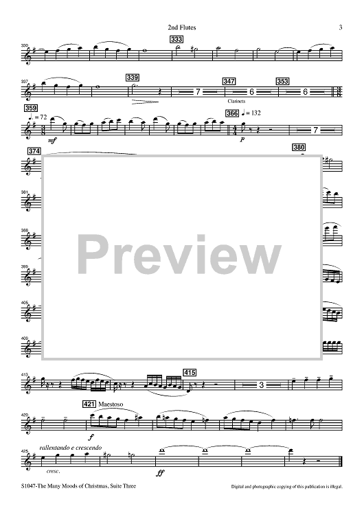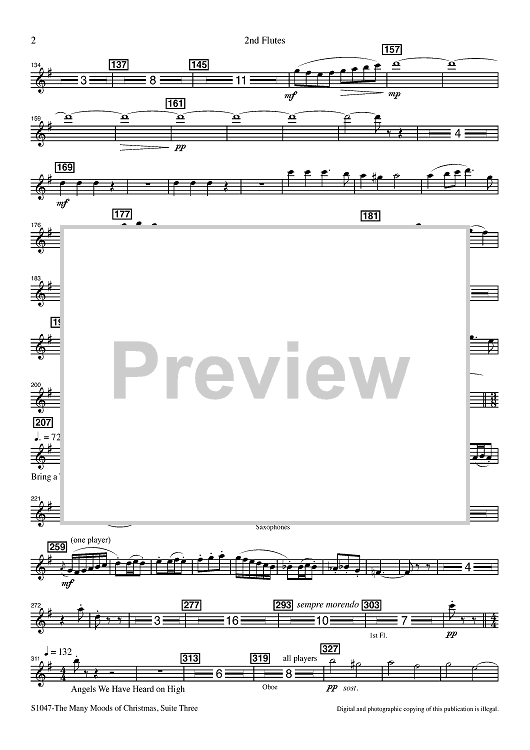 Digital Sheet Music for The Many Moods of Christmas: Suite No. 3 - Flute 2 by Robert Russell Bennett, R. Mark Rogers scored for Concert Band; id:504414