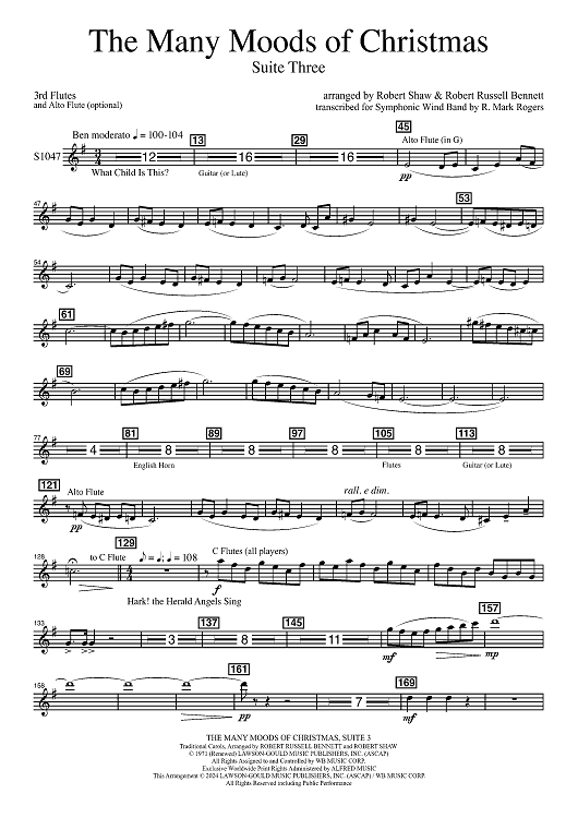Digital Sheet Music for The Many Moods of Christmas: Suite No. 3 - Flute 3 by Robert Russell Bennett, R. Mark Rogers scored for Concert Band; id:504415