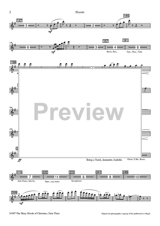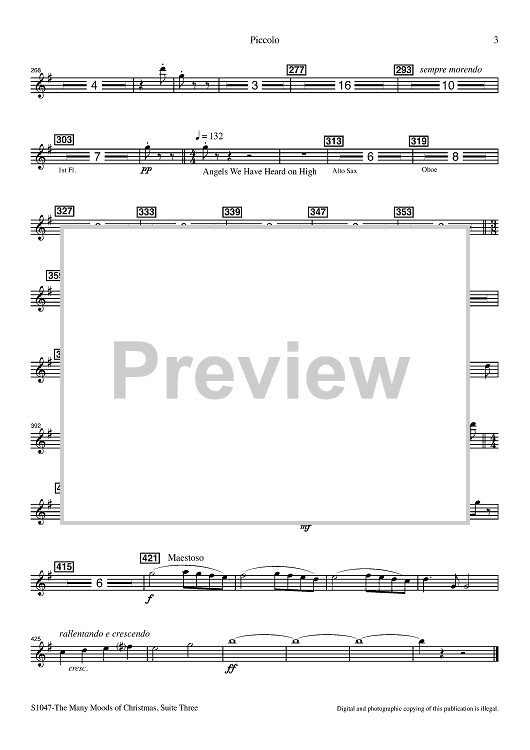 Digital Sheet Music for The Many Moods of Christmas: Suite No. 3 - Piccolo by Robert Russell Bennett, R. Mark Rogers scored for Concert Band; id:504412