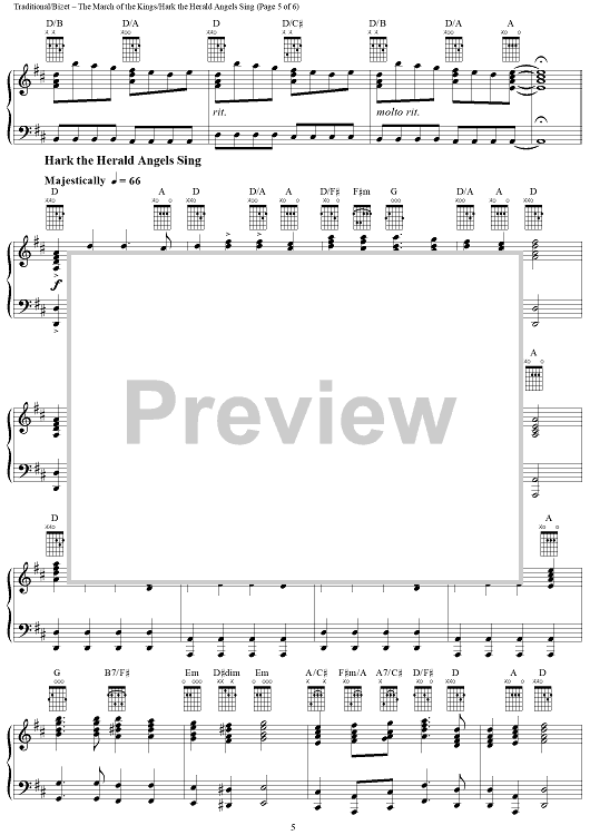 Digital Sheet Music for The March of the Kings/Hark the Herald Angel by Georges Bizet, Trans-Siberian Orchestra, Paul O'Neill, Robert Kinkel, Traditional scored for Piano Solo; id:261410