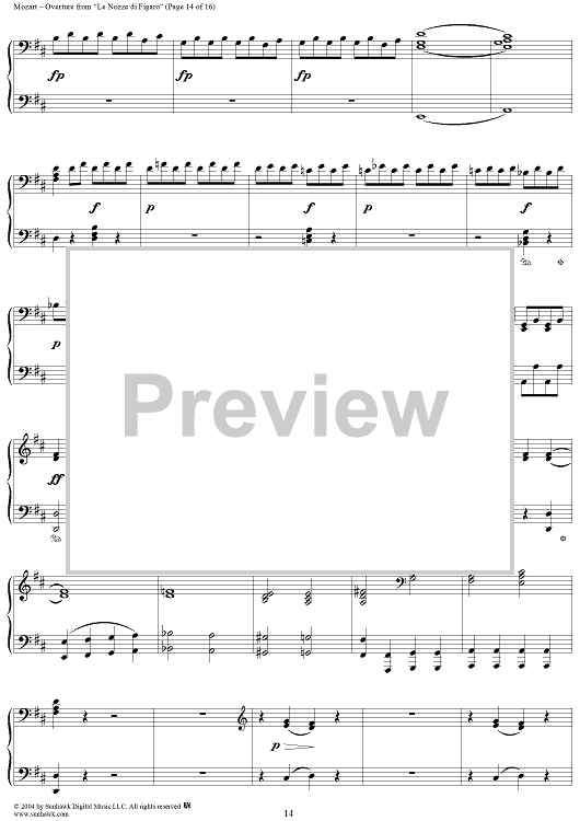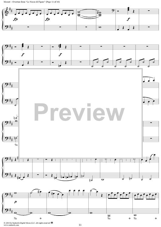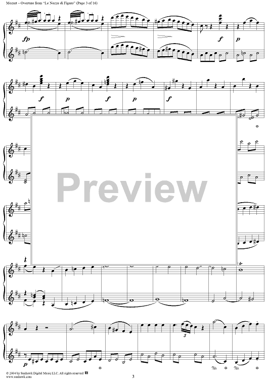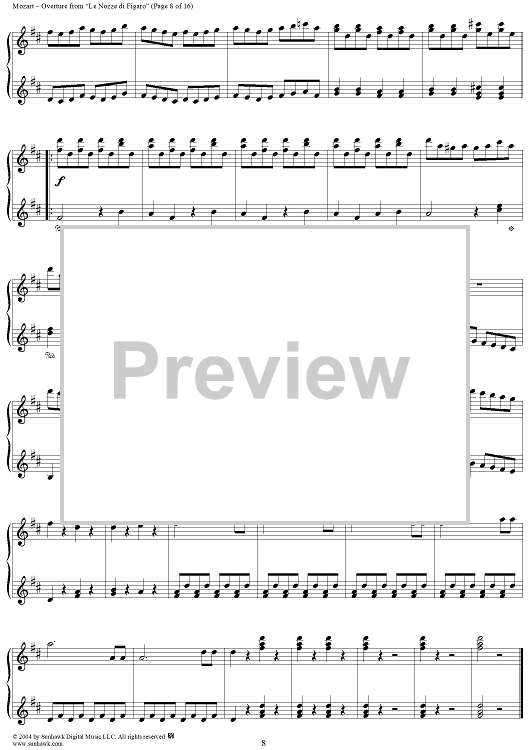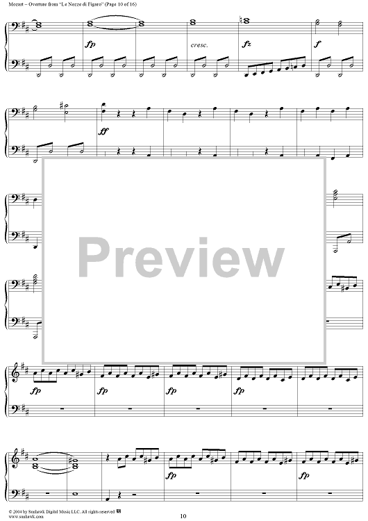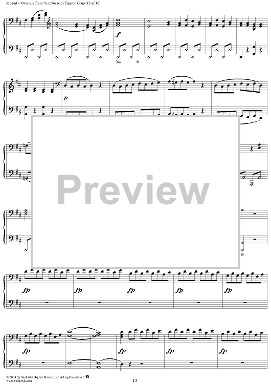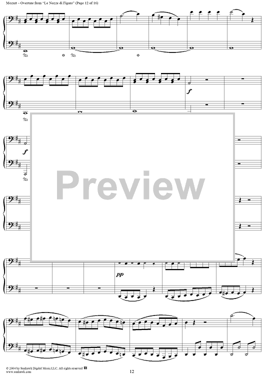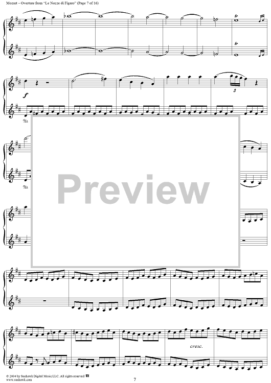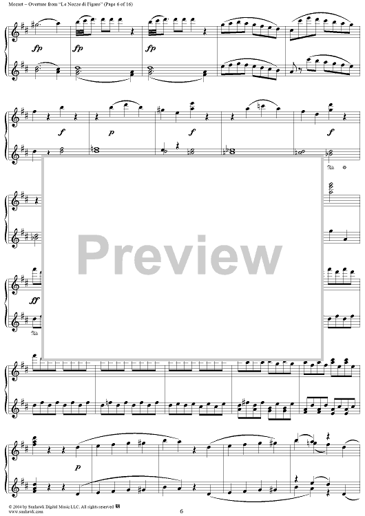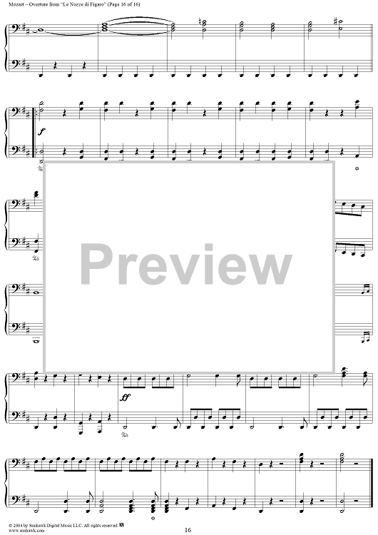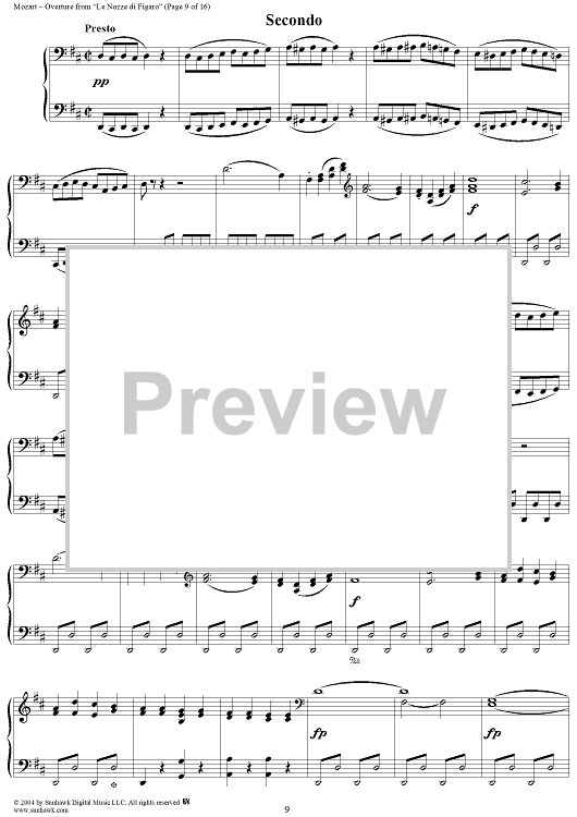 Digital Sheet Music for The Marriage of Figaro, Overture, K492 by Wolfgang Amadeus Mozart scored for 1 Piano, 4 Hands; id:295554