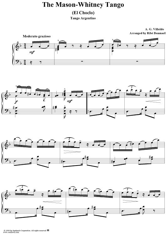 Digital Sheet Music for The Mason-Whitney Tango (El Choclo) by Ribe Danmark, Ángel Villoldo scored for Piano Solo; id:118431