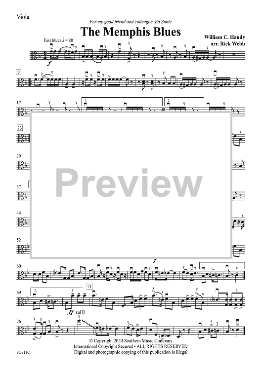 "The Memphis Blues - Viola" Sheet Music by W. C. Handy