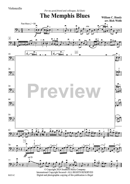 Digital Sheet Music for The Memphis Blues - Violoncello by W. C. Handy, Richard Webb scored for String Orchestra; id:504762