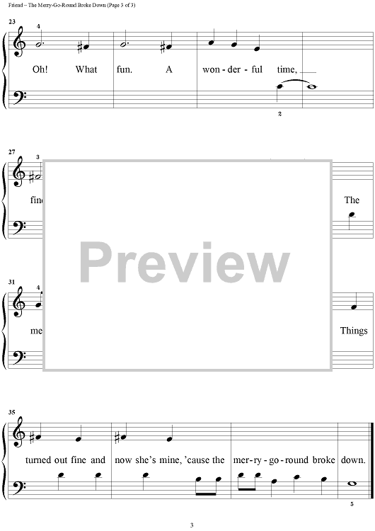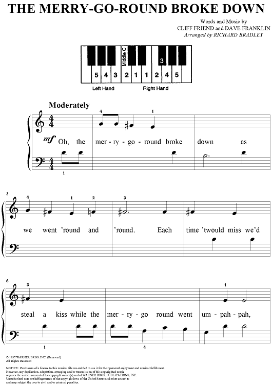 Digital Sheet Music for The Merry-Go-Round Broke Down by Richard Bradley, Cliff Friend, Dave Franklin scored for Five Finger Piano; id:283543