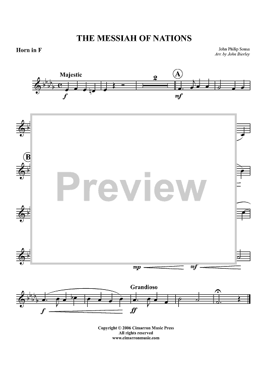 Digital Sheet Music for The Messiah of Nations - Horn in F by , John Philip Sousa, John Bierley scored for Brass Quintet; id:320483