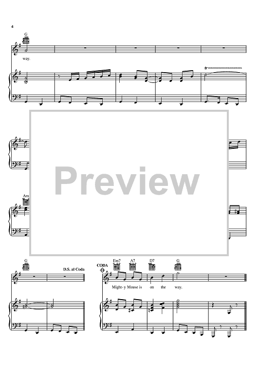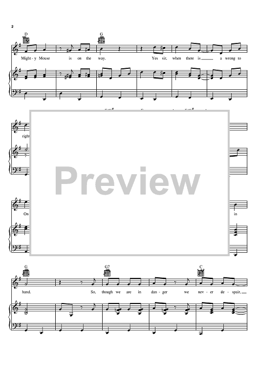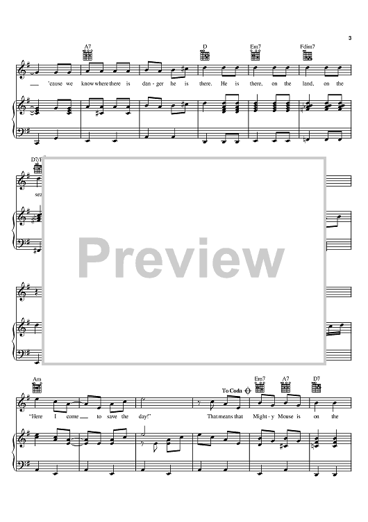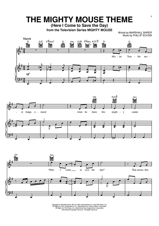 Digital Sheet Music for The Mighty Mouse Theme (Here I Come To Save The Day) by Marshall Barer, Phillip Schieb scored for Piano/Vocal/Chords; id:385462