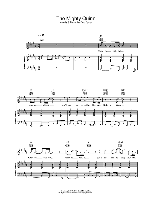 Digital Sheet Music for The Mighty Quinn by Manfred Mann scored for Piano/Vocal/Chords; id:375913