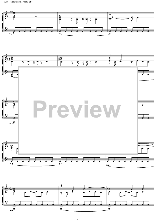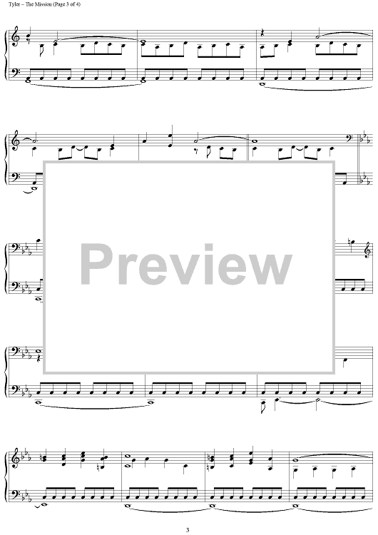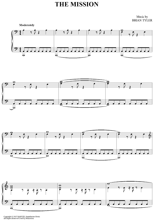 Digital Sheet Music for The Mission by Brian Tyler scored for Piano Solo; id:457512
