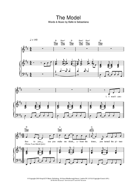Digital Sheet Music for The Model by Belle & Sebastian scored for Piano/Vocal/Chords; id:377097