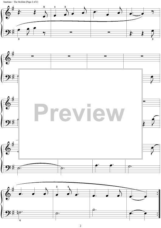 Digital Sheet Music for The Moldau (Vltava) (from the Symphonic Poem Cycle My Country) (Theme) by Bedrich Smetana scored for Five Finger Piano; id:236393