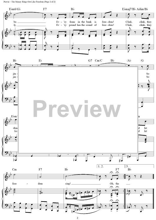 Digital Sheet Music for The Money Rings Out Like Freedom by Alan Jay Lerner, Andre Previn scored for Piano/Vocal/Chords; id:355974