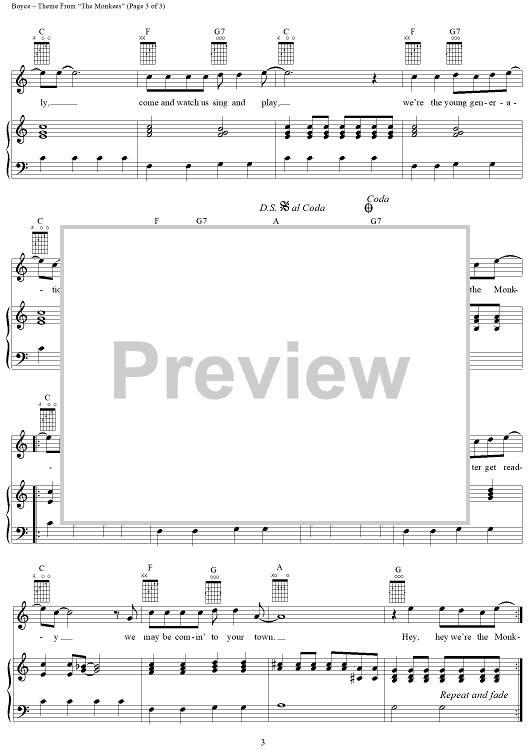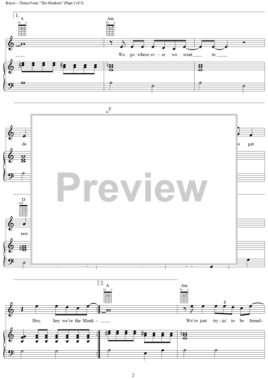 Digital Sheet Music for The Monkees Theme by The Monkees, Tommy Boyce, Bobby Hart scored for Piano/Vocal/Chords; id:116261