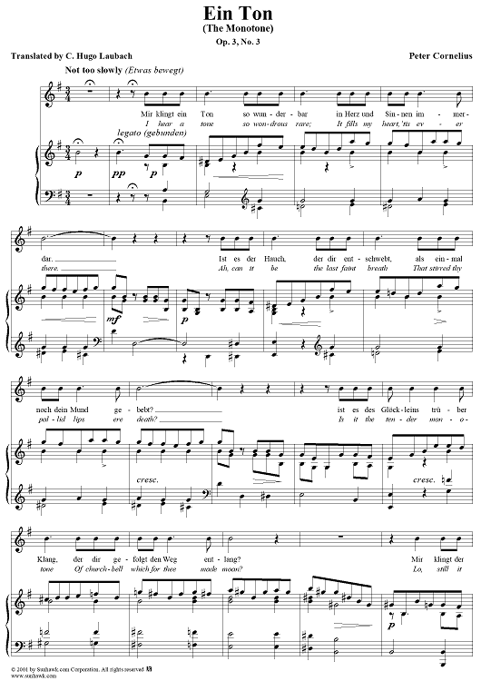 Digital Sheet Music for The Monotone by Peter Cornelius scored for Voice/Piano; id:259583