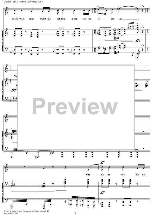 "The Moon Drops Low - Low Voice" Sheet Music by Charles Wakefield Cadman
