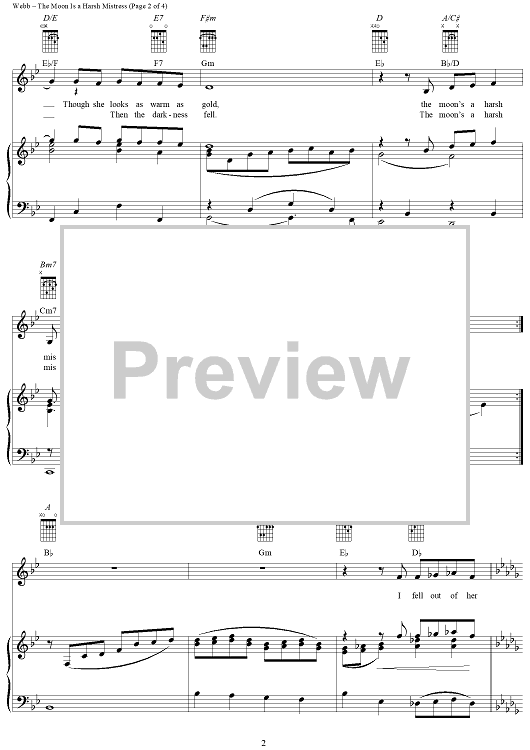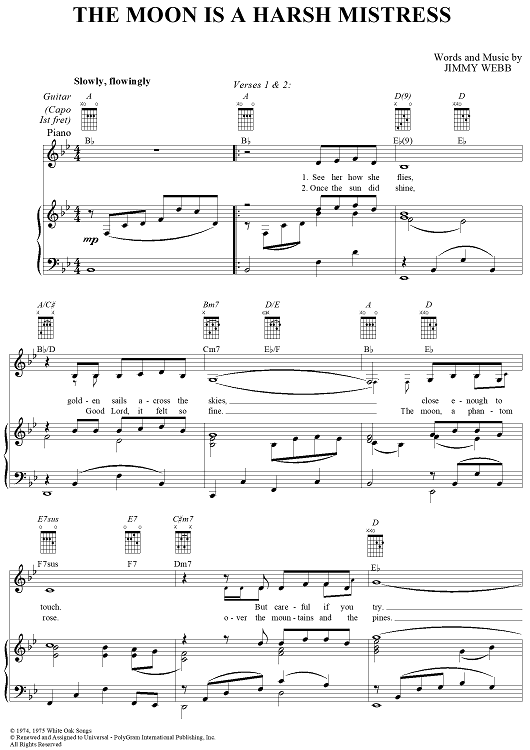 Digital Sheet Music for The Moon Is a Harsh Mistress by Judy Collins, Jimmy Webb scored for Piano/Vocal/Chords; id:285953