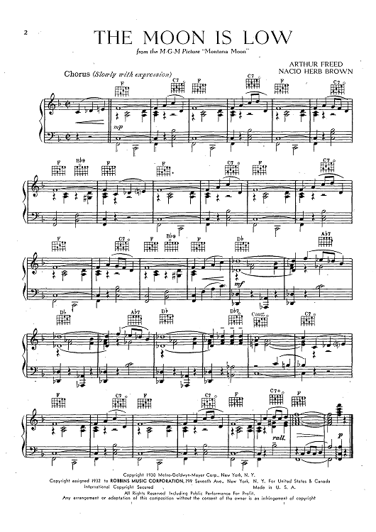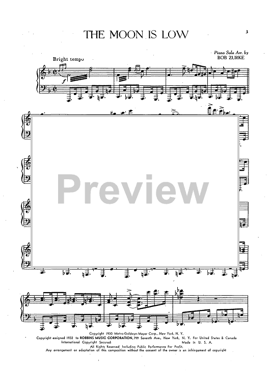 Digital Sheet Music for The Moon Is Low by Nacio Herb Brown, Bob Zurke, Arthur Freed scored for Piano Solo; id:423051