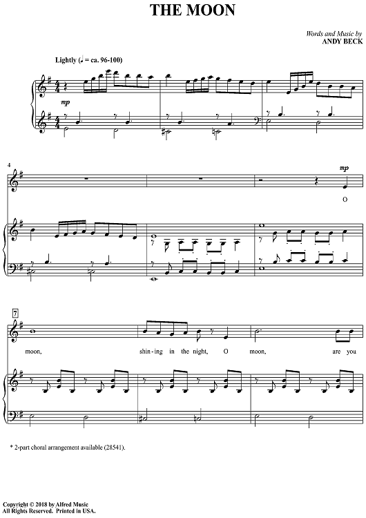 Digital Sheet Music for The Moon by Andy Beck scored for Piano/Vocal; id:497882
