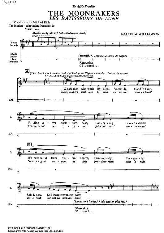 Digital Sheet Music for The Moonrakers - Score by Malcolm Williamson scored for Children and Youth Choir/Piano; id:333559