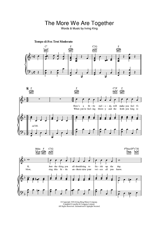 Digital Sheet Music for The More We Are Together by Irving King scored for Piano/Vocal/Chords; id:392643