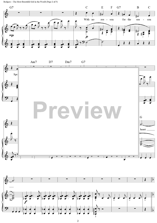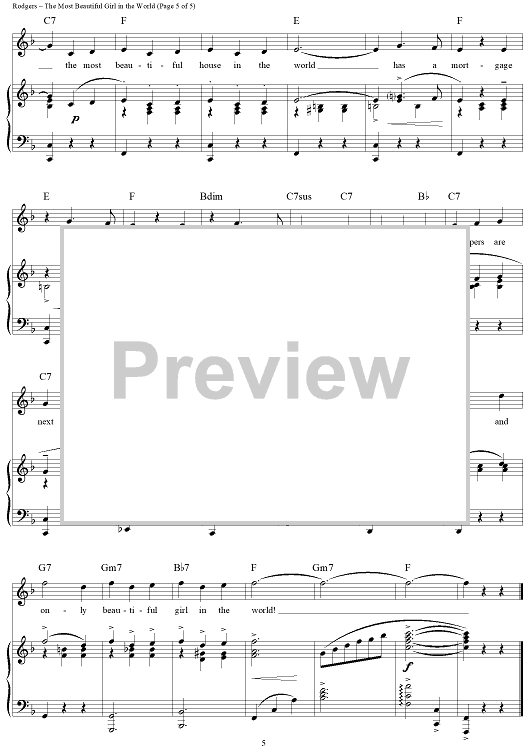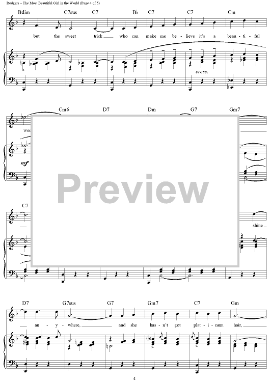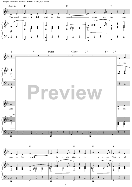 Digital Sheet Music for The Most Beautiful Girl in the World by Richard Rodgers, Lorenz Hart scored for Piano/Vocal/Chords; id:170147