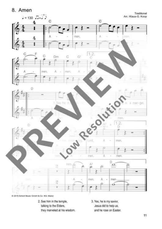 In addition to the very successful series of Hans and Marianne Magolt, they now publish the first volume in the new series 'The Most Beautiful Spirituals & Gospels'. All melodies are very easy arrangements for beginners and can be played at various occasions at home, at the music school, at primary school or in an ensemble. Optionally, the arrangements can be played with an additional second part. Contents: Down by the Riverside, Glory Hallelujah, Go down Moses, O happy day, Rock my soul, He’s got the whole world in his hands, Nobody knows the trouble I’ve seen, Swing low and many more.