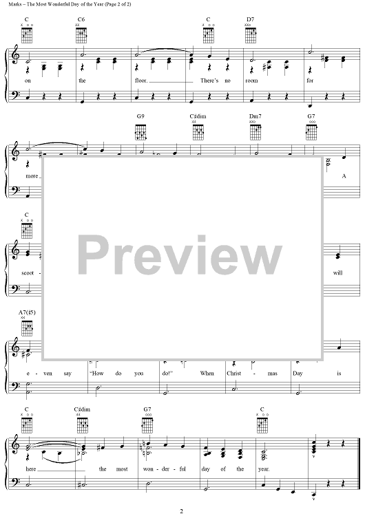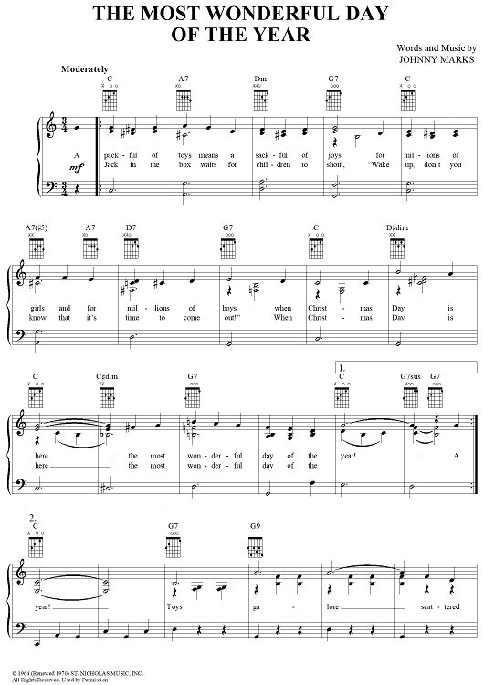 Digital Sheet Music for The Most Wonderful Day of the Year by Johnny Marks scored for Easy Piano/Vocal/Chords; id:252270