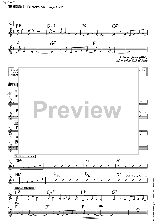 Digital Sheet Music for The Mountain by , Pete Churchill, Abdullah Ibrahim scored for B-flat Lead Sheet; id:355621