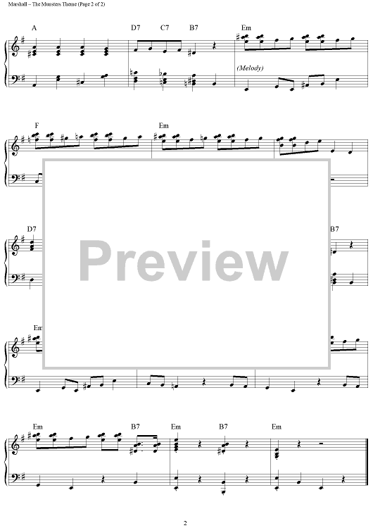 Digital Sheet Music for The Munsters Theme by Jack Marshall scored for Piano Solo; id:288956