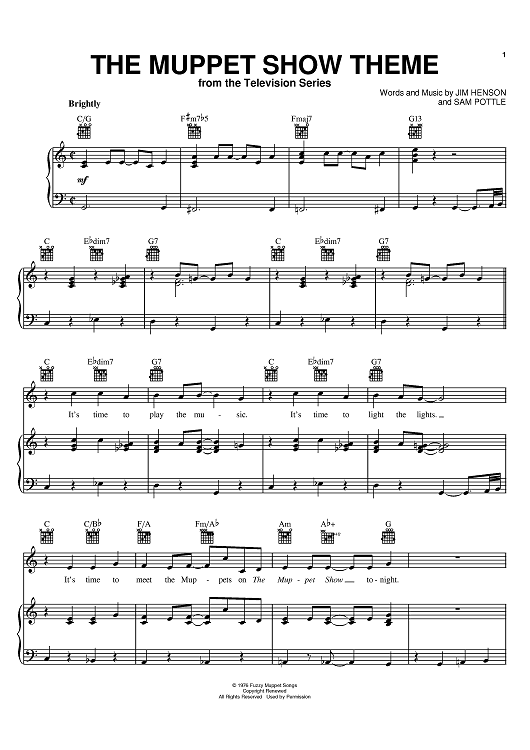 Digital Sheet Music for The Muppet Show Theme by Jim Henson, Sam Pottle scored for Piano/Vocal/Chords; id:370859