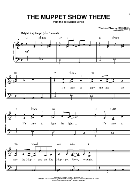 Digital Sheet Music for The Muppet Show Theme by Jim Henson, Sam Pottle scored for Easy Piano; id:373079