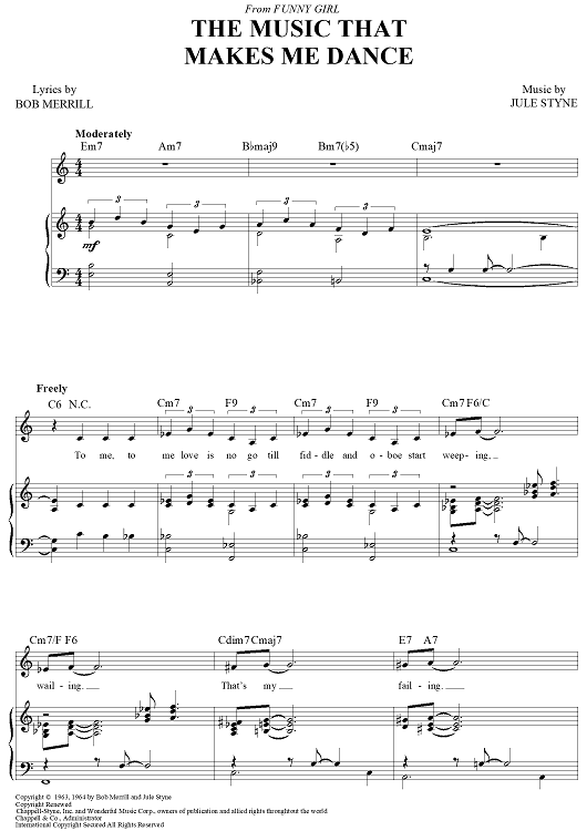 Digital Sheet Music for The Music That Makes Me Dance by Jule Styne, Bob Merrill, Barbra Streisand scored for Piano/Vocal/Chords; id:373600