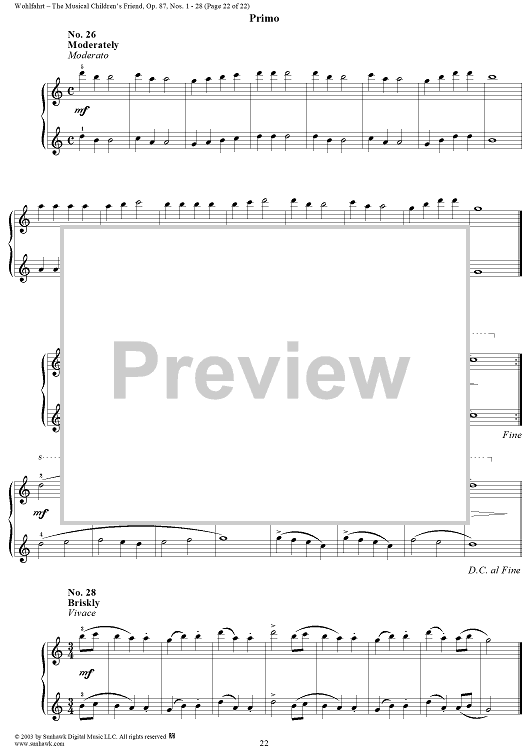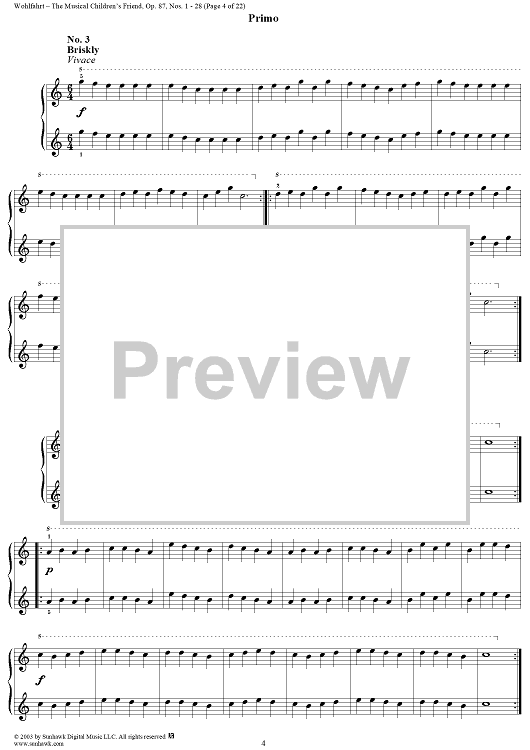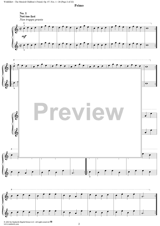 Digital Sheet Music for The Musical Children's Friend, Op. 87, Part 1, Nos. 1 - 28 by Heinrich Wohlfahrt scored for 1 Piano, 4 Hands; id:294880