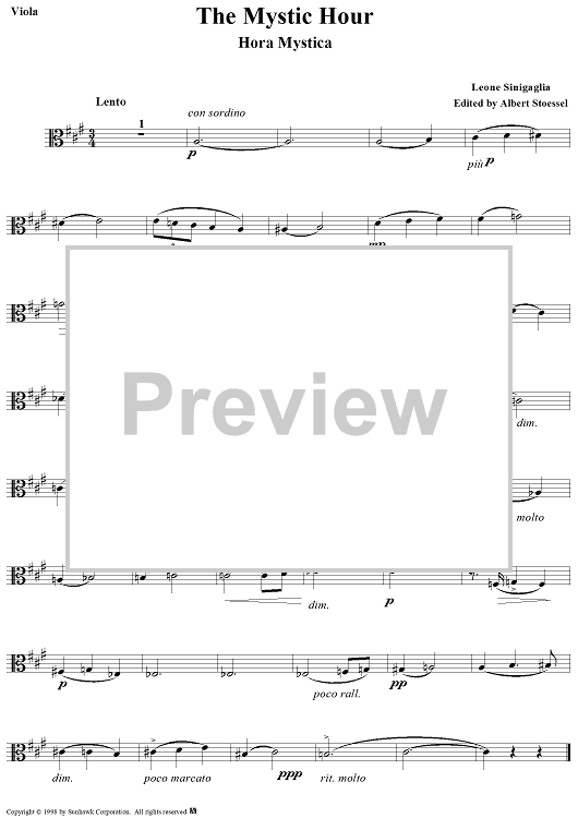 "The Mystic Hour - Viola" Sheet Music by Leone Sinigaglia